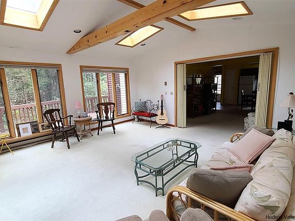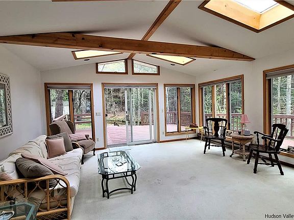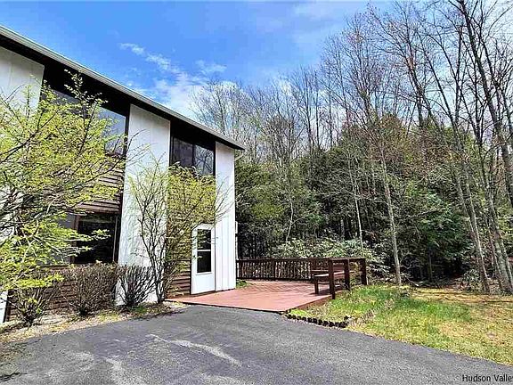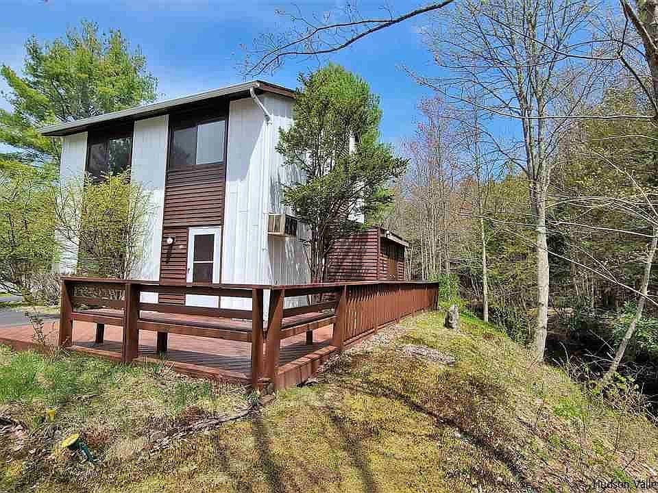 Waterfront townhome is the perfect country place with a gorgeous streamside location! This end-unit is also across the street from the pool, playground and all the community amenities (gym, clubhouse, events)! This has to be the BEST location in all of Patio Homes! Owned and loved by the same family for years, it needs a little updating but is move-in ready. A lovely sunroom with picture perfect views of the stream and back yard is a wonderful place to relax. Spacious open plan is as comfortable as can be and all 3 bedrooms upstairs have hardwood floors and tons of natural light. Wraparound deck was recently stained a deep brown and overlooks the natural landscape and meandering stream. So much to do in the Sullivan County Catskills while your maintenance is pretty much taken care of here! Amenities, garbage removal, lawn maintenace and snow plowing is covered by HOA. Conveniently located to shopping, dining, medical center, Casino and Bethel Woods! Cash only sale. There is an encroachment involving the deck and shed. HOA is 1780 per year, includes pool, playground, clubhouse which is right across the street.