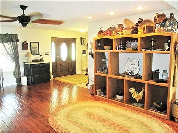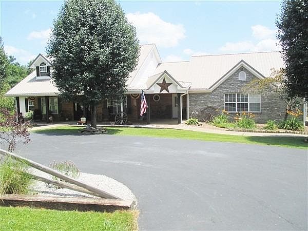 Custom built, high end with 6,000 Sq ft. (Has 2 homes in 1 with a stair way connection and both have own driveways and personal entrance.) Has many possibilities to use for a large family, bed & breakfast, assisted living, 2 family home, or rental for the other one. Very fine living and acreage to roam with stocked pond, trails, old barn, out building. Home furnishings and equipment optional. 2 kitchens with all appliances staying and 2 sets of washers and dryers staying. House is more than move in ready. Just pack your clothes. Watch deer off your deck looking down at your stocked pond.