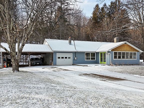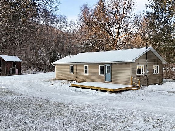 Two distinct homes on one parcel, each thoughtfully positioned with their own private driveway, well, septic system, and separate utilities. Situated on just over 2 picturesque acres in the Hamlet of Speedsville, where a trout stream quietly traces the edge of the land, this exceptional property offers something seldom found. The primary residence welcomes you through a sun-filled three-season porch, an inviting entry rich in warmth and character, centered around a wood-burning fireplace. The open kitchen provides generous counter space and a breakfast bar that transitions seamlessly into the dining area, creating both function and flow. The living room includes a second wood-burning fireplace, delivering warmth and comfort throughout the seasons. Newly finished hardwood floors and tile run throughout, paired with a layout that offers comfortably sized rooms and functional flow. The main home is completed by an attached one-car garage and a two-car carport, providing ample covered parking and storage. Set apart for privacy, the second residence presents a welcoming and versatile living arrangement. Perfect as an in-law suite, guest home, or extended living space. It features a well-appointed eat in kitchen, a welcoming living room with a dedicated office nook, thoughtfully sized rooms, and a full bath with laundry, making a complete and comfortable living space. The new front deck extends living outdoors, ideal for relaxing and enjoying the surrounding landscape. Enhancing the property’s charm is a small barn with a chicken coop, adding rustic character and additional utility. The land invites quiet mornings, outdoor enjoyment, while being within walking distance to local amenities. This rare offering delivers a combination of versatility, setting, and location with convenient access to Cornell University and the greater surrounding counties.