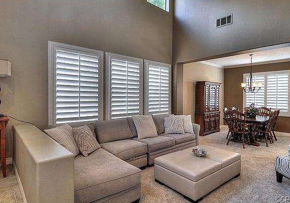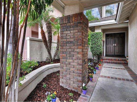 Nestled on a charming tree-lined street,this home's stunning curb appeal w/brick accents makes a striking impression. Located in the wonderful hillside of Foothill Ranch this lovely home has a bright & sunny orientation. Featuring 5 bedrooms, 3 baths & convenient downstairs bedroom w/open floor plan that provides comfortable living for everyone. The upstairs office w/French doors is the 5th bedroom. Totally turnkey w/designer d?cor,neutral colors,full of custom features including plantation shutters,crown molding,upgraded baseboards,recessed lighting,mirrored closet door,upgraded lighting,upgraded carpeting & tile floors.Upon entering you'll notice the two-story ceilings in the living room w/loads of windows & dual sided brick fireplace. Remodeled kitchen with Euro white cabinetry, granite counter tops, center island & breakfast nook with granite top storage cabinet. Adjoining family room with cozy brick fireplace & media niches is a comforting place to unwind. Inside laundry room.Master suite boasts vaulted ceilings,city lights views & remodeled bath w/large walk-in closet w/organizers,dual vanities,Roman tub & separate shower.Inviting backyard w/covered patio & no one behind you offers additional outdoor living space for entertaining. Hurry on this one!