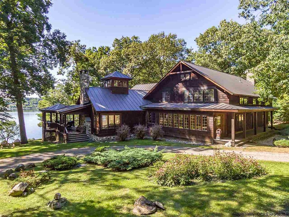 This Hudson Riverfront estate has a long, winding driveway leading to a Craftsman/Arts and Craft style compound surrounded in sought-after privacy and ready for home entertaining. Swim poolside, dine al fresco on the covered porches, or relax on the spacious deck and watch the ever-changing river views. Designed and built by internationally renowned artist Richard Artschwager, and acclaimed Hudson Valley contractor Sam Reichelt, the light woodlands and natural landscaping envelop the compound and create a peaceful and inviting setting. The galley-style entry with wall of windows opens to a living room filled with relaxed elegance featuring a buttressed beam ceiling and cupola filling the room with light. Complemented with a tiled fireplace, wall of custom cabinetry and bank of windows taking in the River views, it steps up to the well-proportioned dining room and kitchen. The kitchen with a center island, top appliances and two sinks creating lots of work space, is designed for family-style gatherings. A study with fireplace adjacent to a full bath is a flexible first-floor master suite. And, there is an at-home office. Upstairs, along with the spacious master suite, there is an additional 3 bedrooms, hall bath and a light-filled library overlooking the River. Outside, a character-filled guest house has a full kitchen with two spacious loft-style rooms. And just at woodland's edge, a sun-lit artist's studio is flexible as a recreation room or second home office. Minutes to the conveniences of Rhinebeck, Bard, and 3/4 mile to Amtrak station. This compound retreat is ideal.
