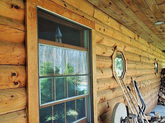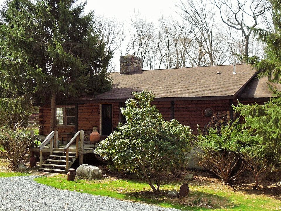 Rarely is there an opportunity to acquire a retreat such as this. Custom log home with modern amenities on 9.91 acres within a quiet lake community, minutes to Rts. 80 & 46 - and with LOW TAXES. Use as a residence, retirement home, or vacation retreat. Home sits back off the road offering privacy & views. Gracious open floor plan, all on one level, with cathedral ceilings of pine tongue & groove and exposed log walls. Great room with towering cobblestone fireplace, kitchen with island & breakfast bar, laundry area, 3 bedrooms & 2 renovated luxurious full baths. Expansive tiered deck with bench seating and hot tub. Cleared back yard has a dog run, chicken coops, and a small barn for horse or pony within a wooden fenced area. 2 car built in oversized garage. Recently paved driveway, brand new full house generator & propane tank (owned), newer furnace, central air & roof. No expense was spared with these updates. Large full basement with high ceilings, wood stove, and pool table. 8.91 acres of the property is farm assessed. Some trees are forested each year by 3rd party to keep status. Home is exactly two miles from the lake. Commuter convenience as well. This very well maintained home is an estate, and priced to sell quickly. Don't miss out on owning this piece of paradise. Call today!