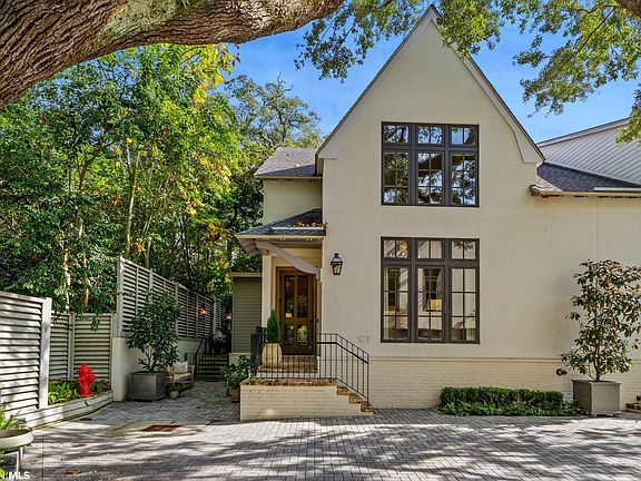 The ultimate location in beautiful downtown Fairhope. Designed by Robert McCown and built in 2016 with superior details & finishes. This fabulous townhome is the largest of the five in the exclusive development. Entire downstairs boasts beautiful dark scored concrete floors and includes a spacious living area with a cathedral height ceiling, gas fireplace w/custom mantle and marble surround, gourmet kitchen with dining area, and a powder room. The gourmet kitchen includes large island with breakfast bar, quartz countertops, GE Profile appliances, and lots of storage. The first floor primary suite overlooks the private courtyard, has a large spa bath including a double vanity, private water closet, garden tub, separate shower, and a massive walk in closet that connects to the laundry room. The second floor features two guest bedrooms each with their own private bathroom separated by a den or large office space with custom built in cabinetry. Other features include tankless hot water heater, double garage, extra parking space plus room for a golf cart, and generous storage throughout. Take a stroll or drive your golf cart to everything in town…farmers markets, parades, shopping, restaurants, concerts and the pier. Buyer/Buyer's agent to verify all pertinent information.