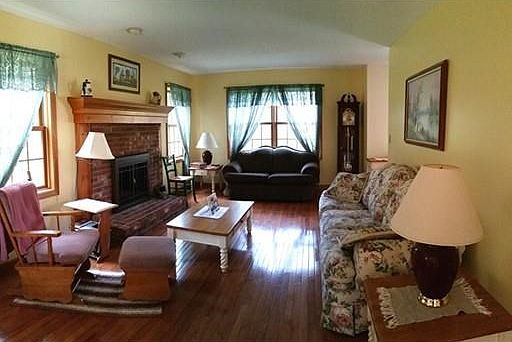 UPSTAIRS-DOWNSTAIRS INSIDE-OUTSIDE Everything you see will please you.Located at the end of a cul-de-sac in a well loved neighborhood sits this beautiful 4 bedroom 2.5 bath contemporary cape nestled on 5 acres of breathtaking land. From the apple orchard & apricot tress down to the gorgeous dogwoods on both sides of the paved driveway. This is definitely "HOME". Even the rhododendrons will be enjoyed by all in your backyard sitting on one of your 2 decks. Your extra large kitchen offers maple cabinets, stainless appliances, center island, pantry, granite countertops & even a desk area for your many cookbooks. A family room w/tile flooring leading to your 1st deck. Your 1st floor laundry leads to the 2nd deck which has a fenced in area. The living room/dining room offer hardwood flooring & wood fireplace. 1st floor master bedroom w/hardwood flooring, full bath w/soaking tub, double sinks & shower w/tile flooring. 3 GENEROUS sized bedrooms upstairs & full bath. 2 car garage.SO MUCH MORE!