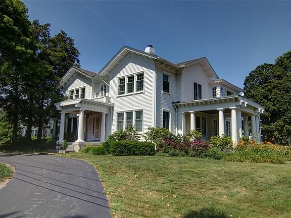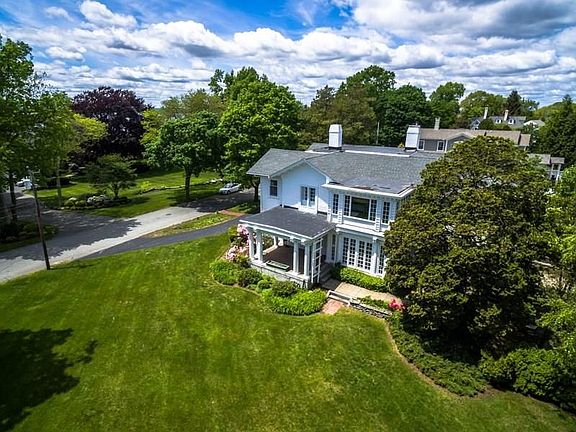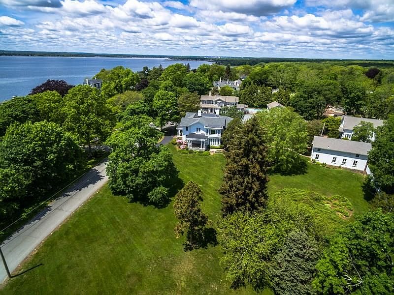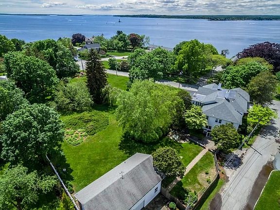 Beautifully appointed Nayatt Point Victorian c.1865 on a gorgeous acre. Property includes a separate 3 bay turn-of-the-century carriage-house garage - lots of possibilities - studio/playroom/guest quarters/more! All vintage details intact - never spoiled! The main house has very tall ceilings, exquisite entry foyer & main staircase, grandly scaled rooms, sunny fireplaced living room, large fireplaced dining room, front parlor & quiet library. Original wood floors and doors/hardware, many vintage lights. more! Wonderful south-facing glass-enclosed porch, private terrace, mature plantings & specimen trees. Exquisitely graceful in every way. Water access directly across the street, seasonal waterviews, incredible opportunity in this strong location. Surrounding values $1.5M to $4M.