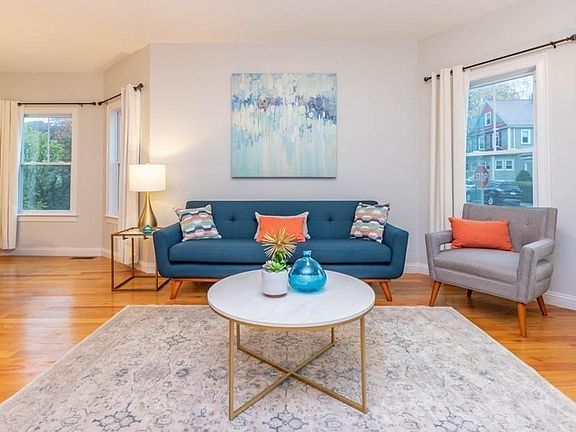 Stylish and modern unit with soaring ceilings in the heart of Roslindale. Amazing open entertaining space into living/dining area, spacious chef's kitchen with a large peninsula, stainless steel appliances, granite countertops, gas wall oven and convection microwave, gas cooktop, custom pantry cabinet with pull-out drawers, access to private deck off the kitchen. 2 large bedrooms with walk-in closets, separate in-unit laundry. Renovated in 2014, new roof, windows, plumbing, electrical & siding. 2 off-street parking spots, locked storage unit in the basement and plenty of common storage. Energy-efficient forced hot air heating system, on-demand hot water system & central air. Walking distance to trendy Roslindale Square, restaurants, shops and commuter rail & Arboretum.