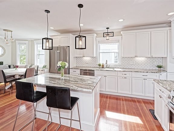 Stunning new offering in East Arlington. This 2020 remodel blends Arlington’s charm with modern designer touches. Prime location steps from Capital Square, the Minuteman Bikeway, Hardy Elementary, Thorndike dog park, Spy Pond and more. Commuters dream walkable to Alewife, bus routes and 5 min to Rt 2. The sun-drenched first floor features custom Cali Closets mudroom, a fabulous entertaining area with spacious living and dining room, kitchen with a massive granite island, designer cabinets and Bosch Appliances, 2 large bedrooms and full bath/laundry. Second floor boasts an office/workout area, primary suite with marble spa-like bath and custom closets. 1 Driveway spot plus sole ownership of the one car garage and basement storage area solves all your storage needs. Enjoy sunrise coffee and sunset dinners on two massive mahogany decks on the quiet, tree-lined street with neighborhood feel. EASY TO SHOW plus open houses Sat & Sun 1230-2; offers due Mon 5 PM