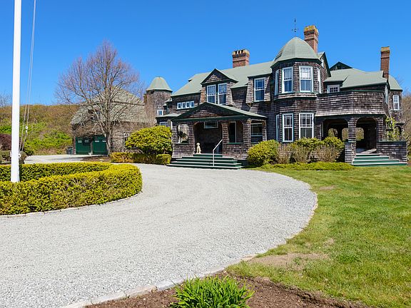 (For more information on this property, please call/text Justin Gallant at 401-742-0958.) "The Boulders" is an 1888 Charles Bevins design. Completely renovated to its historic charm with modern day comforts, this masterpiece features a show-stopping wood paneled foyer with stone fireplace, original stained glass, large kitchen with side prep kitchen and breakfast nook, library/media center, six bedrooms, inlaid hardwood flooring, multiple fireplaces, arched entries, office with exterior deck plus numerous sitting alcoves. Elaborate wood paneled dining room features pocket doors, butler’s pantry, brick fireplace, and doors to the expansive covered porch. Enjoy beautiful water views amid lush grounds and English gardens. Convenient guest suite above two-car garage. Private beach access.