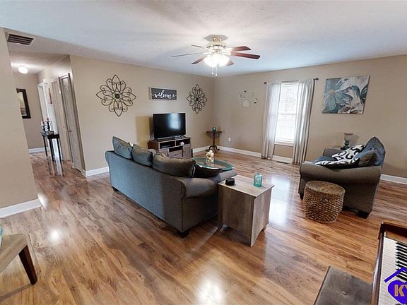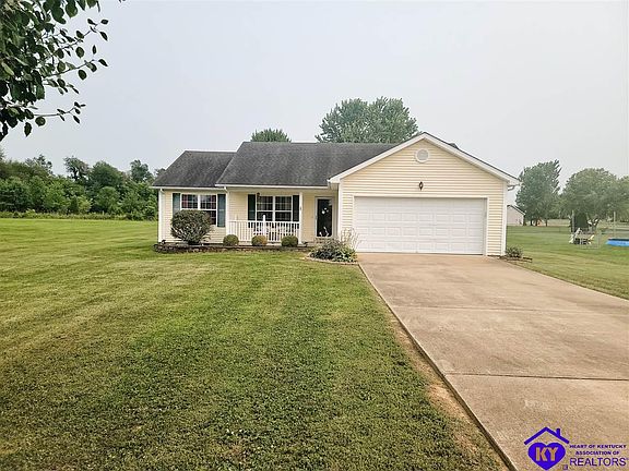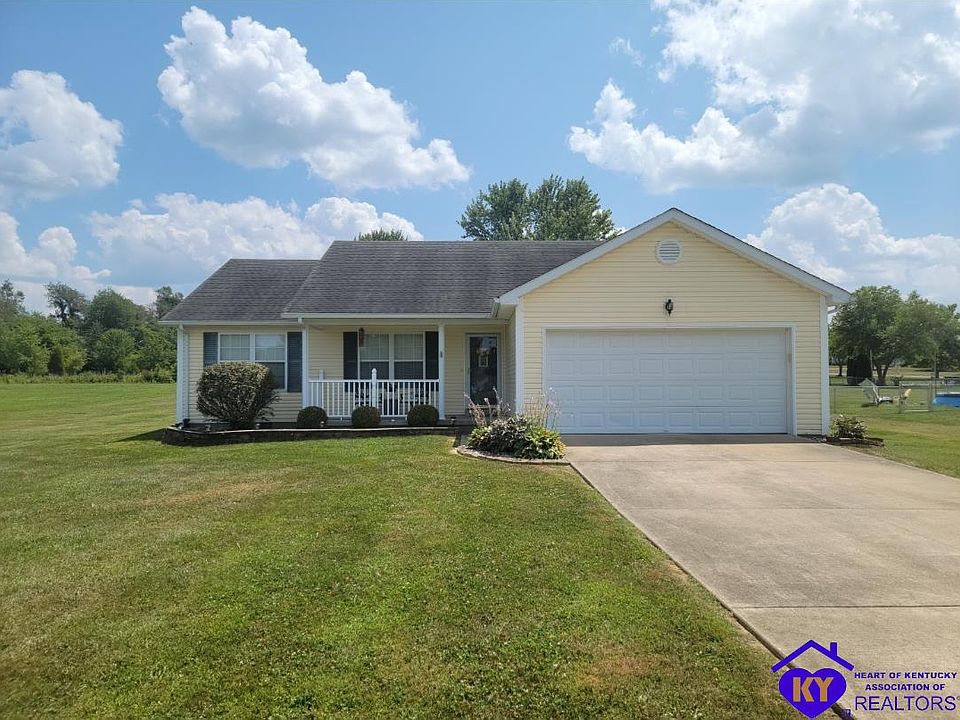 Charming home, ready to move in. This home offers a modern open floor plan and design all on one level. 1356 well maintained and finished sq ft. The efficient kitchen comes with cabinet, counter, and pantry space. The oversized living room gives many options for layout and use. You will find walk in closets in not only the master bedroom but in the 2nd bedroom as well. Additional easy to access attic space in the garage. The exterior offers a covered front porch on the front and a large deck overlooking a sprawling flat back yard. Several mature trees and shed stays with the property. a must tour.