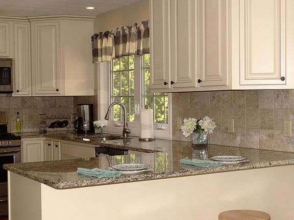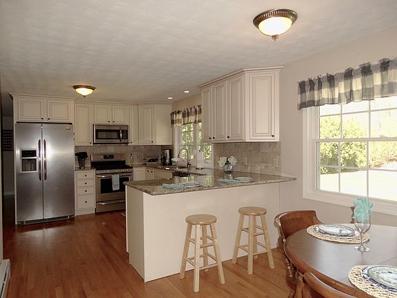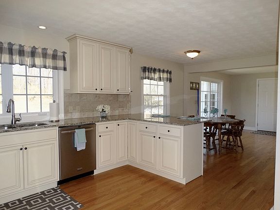 Beautifully renovated Ranch-style home centrally located on a quiet dead-end street. A light and bright family room is adjoined by a custom kitchen that features gorgeous cabinetry, granite countertops, stainless steel Energy Star appliances, and a lovely dining area. Adjacent to the kitchen is a spacious living room with hardwood floors, a cozy brick fireplace and sunny picture window. The Master bedroom and two additional good-sized bedrooms all offer hardwood flooring and plenty of closet space. A full bath with tile tub/shower surround, tile flooring, and granite countertop complete the first floor. The front and backyard are professional landscaped and offer two paver patios. APO renovations in 2012 include: custom kitchen, roof, siding, Andersen windows, hardwood flooring in kitchen and family room, stone paver patios, solid wood doors and trim, furnace, oil tank, cordless Levolor blinds throughout, and sprinkler system.