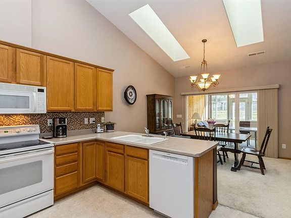Wonderful one level living can be yours in this desirable east side location. The vaulted ceilings allow for continuous daylight from the east/west windows. The front living room is a great place for visiting and TV watching. The centrally located kitchen enables you to be apart of the action wherever it is, and the long kitchen counter for pull up bar stools allowing guests to visit and sample the cooking! There is an eat-in portion of the kitchen and off this area is a slider door to a four-season porch (has a heat source.) The two bedrooms, bath, and laundry area are located close to each other allowing for great accessibility. There is an attached 2 car garage with pull down stairs for attic storage. A wonderful home to come home to!