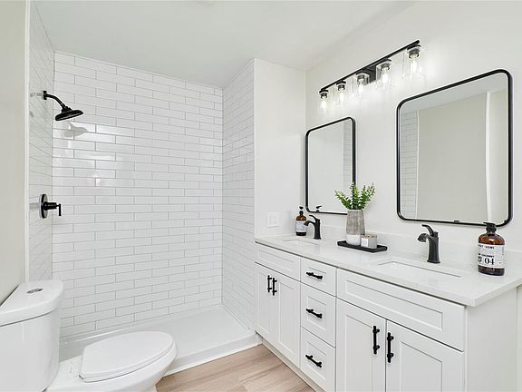 - Separate Dining, Custom Cabinetry, Eat-in Kitchen, Pantry, Solid Surface Countertop(s), Double Vanity, Shower