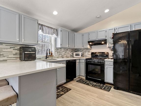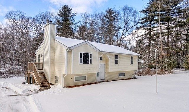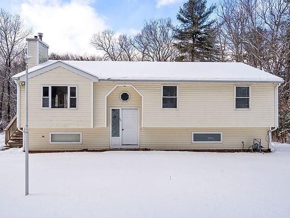 OFFER DEADLINE: Feb 20th at 12pm. You'll feel right at home in this charming open floor plan, filled with natural light and featuring a stunning cathedral ceiling and a cozy pellet stove. The modern kitchen includes a gas stove, updated appliances, and new flooring. A spacious eat-in area flows seamlessly into the inviting living room. Don’t miss the beautifully updated bathroom with a new vanity, shower, and flooring. The generous primary bedroom offers ample space for your furnishings and a large closet, along with two additional hardwood-floored bedrooms. This New England raised ranch features a basement that serves as a blank canvas, perfect for an extra family room, workshop, or office, with a heated workshop fitted with a ventless propane heater. Recent upgrades include a new water heater (2024) and well pump (2023). Enjoy the expansive yard, deck, and fire pit area, ideal for entertaining!