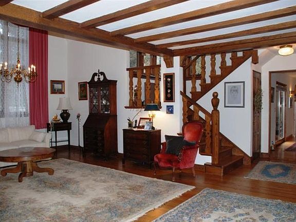 Custom-built Tudor with attached 2 bedroom apartment in Burlington Hill Section. Desirable cul-de-sac location with large private back yard. Vaulted ceiling living room with wood-burning fireplace. Upgraded kitchen, sunken family room & master suite. Enclosed west-facing porch is a great office or retreat space! Landscaped patio is perfect for entertaining.
