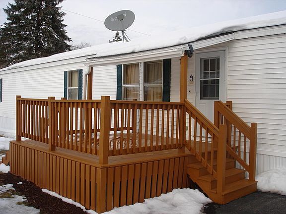 Burlington manufactured 1991 home features sunny kitchen/dining area, large living room, 2 bedrooms & a full bath. Also included is a sunny porch/deck, storage shed & paved drive. The home has central air & heat pump. This 55+ community offers a clubhouse & great location.