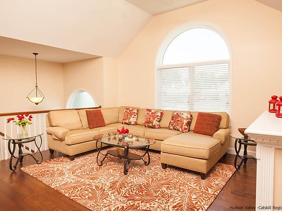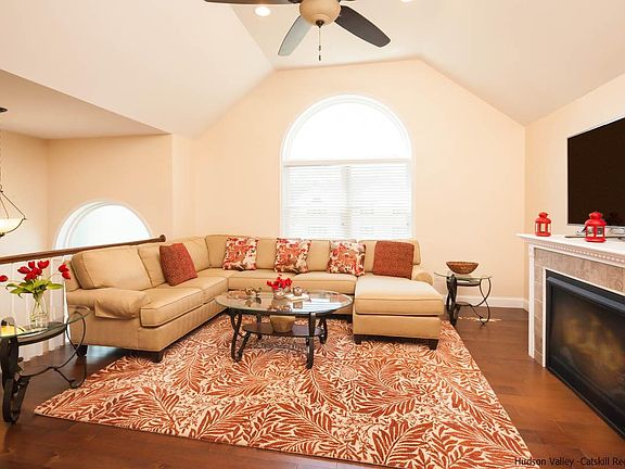 Welcome to Oakwood Park, a prime location of convenience yet tucked away in very quiet community setting, perfect for growing families or anyone needing quick access to everything Kingston has to offer. Walk to the elementary and middles schools, take advantage of the playgrounds and be close to all major shopping and restaurants. A development if fine homes, Oakwood Park is where you will see pride of ownership, manicured lawns, children riding bikes, and dogs being walked. Thruway and Rhinecliff Bridge both close by. The community offers underground utilities, natural gas, and municipal water and sewer offering the highest levels of convenience and peace of mind for buyers. This virtually new home has been impeccably maintained by the current owner and numerous updates have been done since construction was completed. High cathedral ceilings in living room which is open to the kitchen and dining areas making this a perfect home to entertain friends and family in. One of the nicest kitchens I've seen in a long time, complete with top of the line stainless Samsung appliances, full pantry, granite counters, tiled backsplash, breakfast bar, and hardwood floors throughout that space. Living room offers tons of natural light, gas fireplace, and is the perfect size for most large furniture pieces. Dining area is large enough for the big table you always wanted for family meals and it leads out to the back deck making summer BBQ's easy. The paint colors chosen here are amazing and everything in general has been so well cared for that you won't have to paint before moving in, unlike many other homes you may have seen. Finished lower level offers another office/bedroom and additional family room/man cave/play or exercise room making for the ultimate versatile space for guests or simply a quiet space separate from the upstairs whenever you need it. Full bath on the lower level makes it a great guest suite or teenager bedroom. Large master bedroom and spacious bathroom complete with big walk in closet just what many are looking for these days. Plus two other main level bedrooms flooded with light and large enough for all the children's toys and things. From the lighting and other fixtures, to the other custom details throughout the home, custom gas fireplace, oversized garage with automatic door openers, central air, new double wide blacktop driveway, stainless appliance package upgrade, interior/exterior lighting and landscaping upgrades, solid shelving in closets, Trex low maintenance decking, and custom blinds on every window, this turn key home has the perfect layout and is in mint condition. Close to 25k in upgrades that many other homes in the neighborhood may not have. Clean, convenient, and close to everything. This is the type of seller you want to buy from, one who hasn't neglected the home and someone who has taken the home and property from the raw baseline new construction to the upgraded and enhanced "home" it is today. This is by far the most affordable newer construction home on the market in the town of Ulster and city of Kingston. It's the only home available today on Pawan Circle. Current price reflects the numerous upgrades done after it was built as well as the limited supply of newer homes on the market at the present time. Nothing else like this under 350k. Motivated seller, please present all offers.