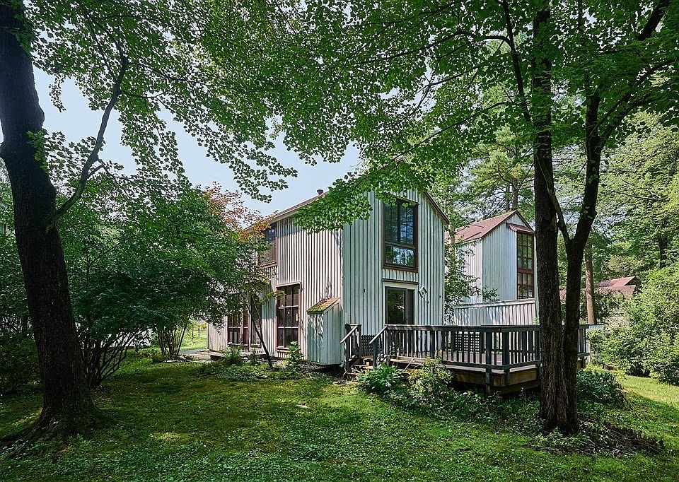Move right into the impeccably maintained, freshly painted & upgraded post and beam townhouse at Ice Pond Woods! It is conveniently located close to Amherst Center & UMass as well as to the bike path & conservation trails. This is one of a few free standing, 2-bedroom, 1 bath, 1 car garage units & touts a contemporary floor plan w/ a plethora of substantive improvements. The entire main level w/ unique sunken LR & kitchen is brightened by lighter porcelain planking over pine floors, lightened walls & pendant lighting. Banks of new Anderson windows bring the natural light in throughout the unit. The kitchen features granite counters & new appliances w/ dining area. New French Doors lead to the expansive deck, perfect for outdoor entertaining or relaxing in the peaceful natural setting. The entirely remodeled 3/4 bath is stunning with tiled shower. walls & floors. You will appreciate a newer gas HVAC system, banks of Anderson windows & radiant kitchen floor heat for energy efficiency!