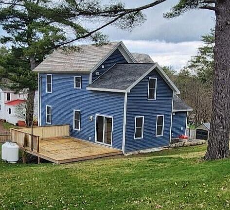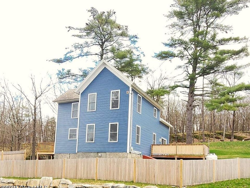 Like new in '22! This beautiful home has been completely remodeled inside and out. Attractive, long lasting vinyl siding, big decks on 2 sides, energy efficient windows, landscaping. The interior features beautiful refinished wood floors in many rooms, new kitchen cabinets, counters and appliances. Washer and dryer hookup on the first floor. First floor bedroom and full bath. 3 bedrooms (or den) and full bath on 2nd floor. 200 amp electric panel, propane furnace with individual zones for each room. Lots of room to roam on the half acre+ property featuring a unique red rock natural stone wall. With 16 acres to the north and 5 acres behind this property you'll enjoy the feeling of living in the country with convenient access to the village. One of a kind home, move right in!