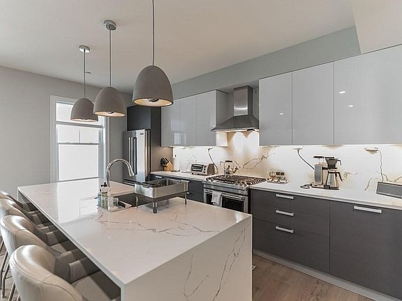 MODERN, contemporary three bedroom, two bathroom condo situated in a newly constructed condo building, this 1550+ sq. ft. home features a beautifully designed kitchen with Italian cabinets, quartz waterfall island, stunning under cabinet lighting and high end stainless steel appliances which flow beautifully into the open living space. 3 bedrooms sit off the main living space with luminous hard wood floors and California style walk in closets. Spa like bathrooms with double vanities, large mirrors and glass doors allow for a sanctuary-feel, right in your own home. Other features include a private yard, in-unit washer dryer, central heating/cooling and two assigned parking spots in the heated underground garage. Located seconds away from plenty of local restaurants, shops, grocery stores and is close to parks and playgrounds. Dec 1st! First month, one month security and a one month broker fee due at lease signing! Pet friendly! Tenant pays gas and electric, landlord pays water and sewer