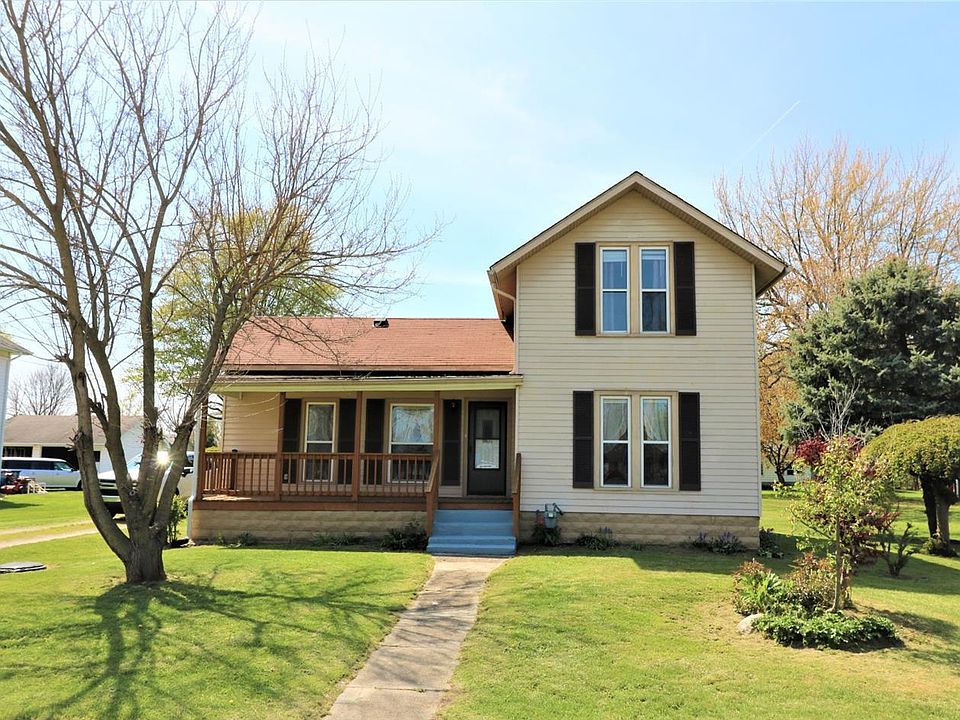 This 4 bedroom home situated in the village of Wakeman features newer front porch, 3 car garage, and full basement for additional storage. Some of the updates include dining room floor (2020), new sump pump (2020), kitchen flooring, counters, and sink (2017) and new drywall, trim, railings and lights in upstairs bedrooms (2017). Fourth bedroom was recently converted into laundry room but can easily be reverted back to a bedroom. Dining room rug, stove and refrigerator are included (appliances 1 year old). Detached garage would make a great workshop/man cave!