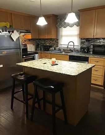 - Kit Dscrp: Flooring - Hardwood, Countertops - Stone/Granite/Solid, Kitchen Island, Remodeled, Balcony / Deck, Cable Hookup