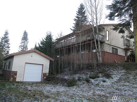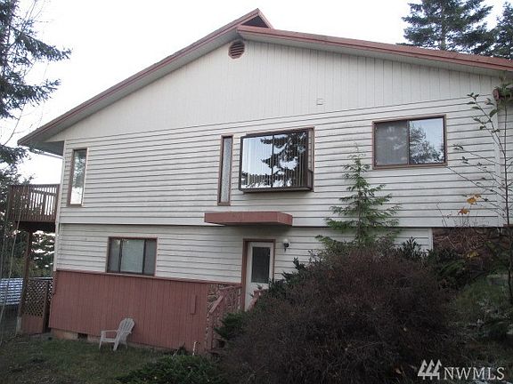 Stunning 180 degree view of the Straits of Juan De Fuca, Mt Baker and beyond. This home has 2 bedrooms on the main floor with master bath and main bath. There is a separate dining room plus eating area off kitchen. Master bedroom has a fireplace. Living room with large fireplace and rock wall. Downstairs there is a hot tub room, 3 more bedrooms, and 2 more bonus rooms. Attached 2 car garage and an additional detached 1 car garage and shop.