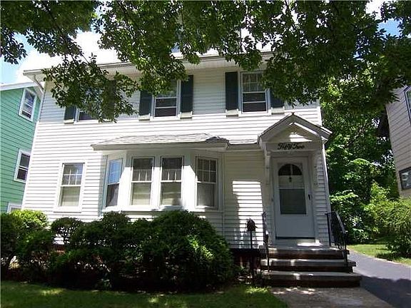 Darling colonial a mere block from Strong Med Ctr. Safe, pretty nghbrhd (mostly med ppl). Charming features include gumwood, leaded glass, decorative fireplace, hardwood floors, enclosed side porch, full finished bright attic not counted in sq ft stated. Quaint kitchen includes refrig and stove. Vintage bathroom in fine shape. Full bsmnt; washer & dryer remain! 2-car garage w/new doors! Large paved driveway fits 5 cars. Consistent maintenance & updates by longtime owner. High-quality vinyl siding. Furnace '05. Clean. Move-in condition. $9K City/UofR grant poss for UofR employees.