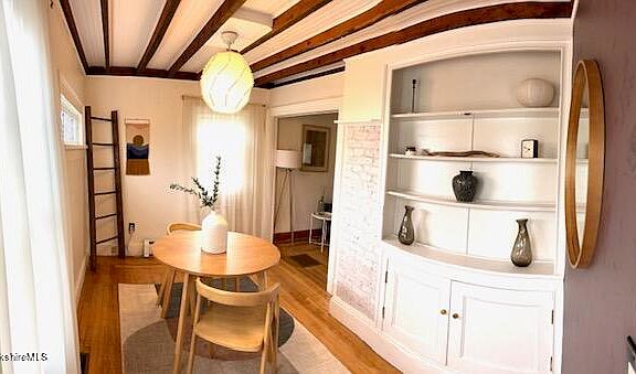 Delightfully updated interior feels like you are walking through the pages of a magazine! Modern kitchen and bath, wood floors throughout give that warm homey feel. Enter a large mud room/laundry into a modern kitchen, circle to a formal dining with built in hutch, and into the spacious living room. 3/4 bath on first level. 2 bedrooms up completes the interior. Enjoy the view in the large, fenced yard with deck to watch the sunset over the mountains. Charming cottage within a short walk to town, Close to Mass MoCA, MCLA, Clark Art, Williams College and everything that the Berkshires have to offer.