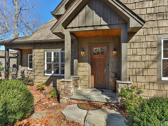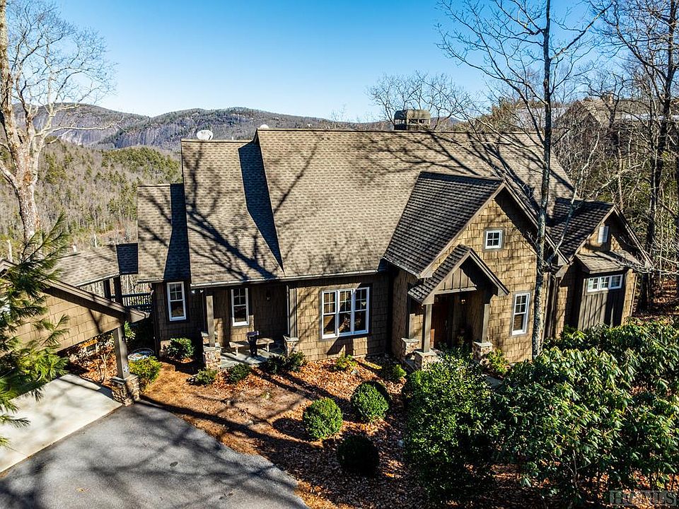 Craftsman lodge in the heart of Cashiers! Year round mountain views of Laurel Knob & Cow Rock! Open floor plan: great room w/massive stone wood burning fireplace w/gas starter open to dining area & chef's kitchen w/granite counters, SS appliances, gas range & cooktop, corner sink overlooks the mountain views. Outdoor covered porch w/another wood burning gas starter fireplace. Master en suite & 1 guest bedroom en suite on main level. 2 more guest bedrooms en suite on upper level. Lower level features huge family/game rm w/ping pong & basketball shooting game, stone wood-burning fireplace w/gas starter, covered deck & a bonus room for extra sleeping quarters w/full bath. Antique timbers, wood floors, rustic mountain elegance at its best! Partial house generator. Exceptional quality through-out. Located on a quiet cul-de-sac in an upscale gated community very close to the charming village of Cashiers! Selling totally & tastefully furnished! Move-in ready!
