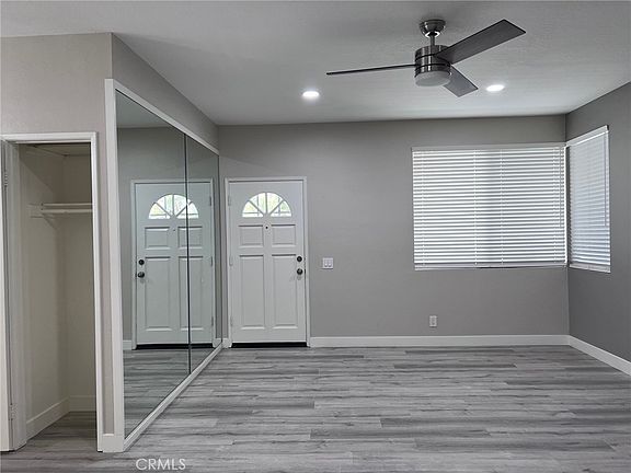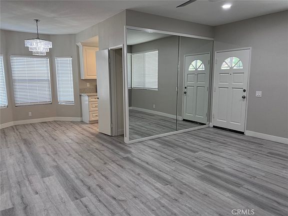 Beautiful turnkey single level ground end unit is light and bright plus greenbelt view. This 2 bedroom 2 bath unit is remodeled with upgraded luxurious Vinyl plank flooring through out the unit. The kitchen is also remodeled with upgraded quartz counter, white cabinets, soft close drawers and SS sink. Dining area with bay windows and upgraded crystal chandelier. Spacious living room with wall mirror and ceiling fan. Custom paint, custom cordless blinds and high base board through out. Master bedroom has walk in closet with built-in organizer. Secondary bedroom with ceiling fan and wardrobe with shelves. The spacious front patio is great for outdoor planting and entertainment. The unit has one space of a shared parking garage and the neighborhood provides plenty of guest parking. The association offers pool, spa, hot tub as well as trash collection. The home is close to shopping, restaurants and easy freeway access. Its a very nice place to come home to.