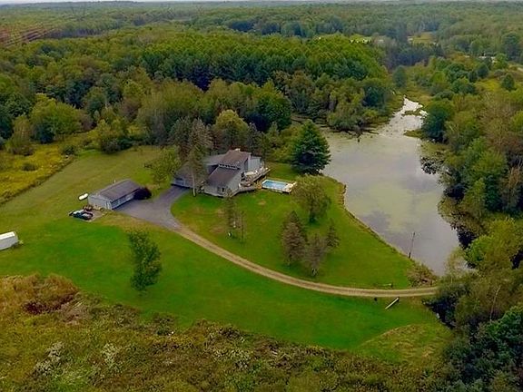 PERFECT PLACE TO QUARANTINE! LOCATED ON 14 ACRES, INCLUDES A PRIVATE POND, POOL, STREAM, AND IN LAW APARTMENT! RECENTLY INSTALLED CENTRAL AIR! Secluded and updated- this home has it all! Large kitchen with formal dining room, cathedral ceilings, walkout basement, open living room, and floor to ceiling stone fireplace! Master bedroom includes a walk-in closet, jacuzzi bathtub, private fireplace, and walkout entrance to a fenced in yard. Three additional bedrooms located in a separate wing of the house with separate full bathroom. DETACHED IN LAW APARTMENT comes with its own 2 car garage with electric service, KITCHEN, and FULL BATHROOM! ONLY 10 MINUTES FROM 81 AND CLOSE TO THE SALMON RIVER! This property will meet all your needs and surpass your expectations!