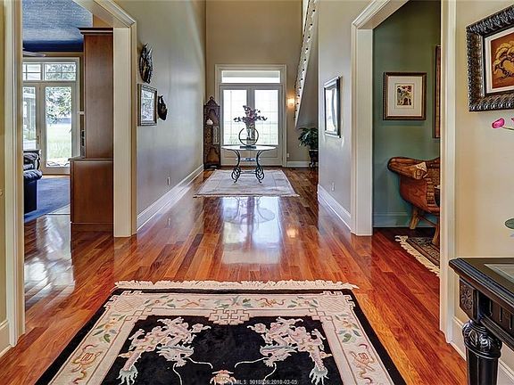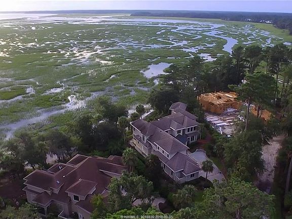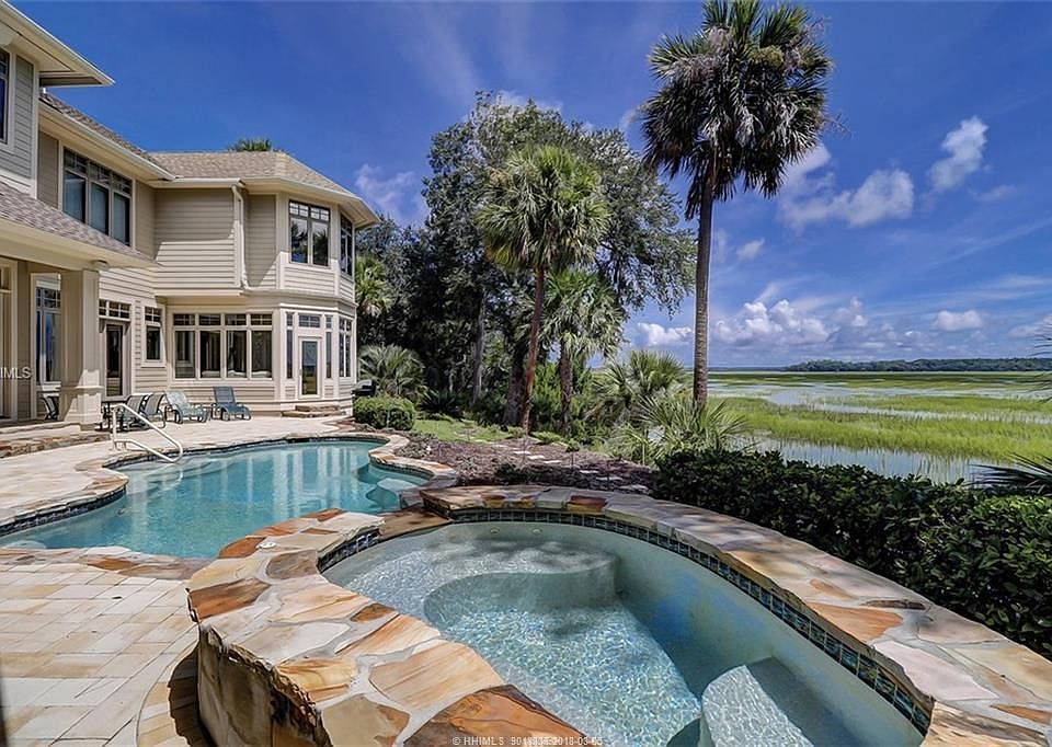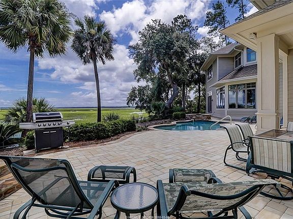 This homesite overlooking the Colleton marsh and river was purchased for $695,000. A beautiful home with multiple spaces for entertaining, 5BR, 6.5BA, mahogany floors, 4 fireplaces, 2 offices with custom cabinetry, gourmet kitchen, spacious sun room, home theater, 3.5 car garage, elevator, master suite with sitting room with fireplace, craft room, exercise room, and secluded pool and spa overlooking spectacular marsh and river views. 80% of all rooms view the Colleton marsh and river. Very private setting at the end of a cul-de-sac. Home built for $1.7 million. Total cost $2.4 million now offered at $1.4 million below cost!