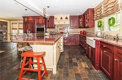 Exceptional home features a recent renovation to include a custom kitchen with Wolf cook-top and range, Sub-Zero refridgerator, granite countertops and farm-sink. Kitchen opens on two sides to wrap - around paver patio and terraced yard. Gorgeous slate floor in kitchen and entry hall. Wood floors throughout. New powder room on first floor. Open floor plan from kitchen to living room with wood burning fireplace. Kitchen with huge center island, seats 6. Heat and CAC replaced in 2006