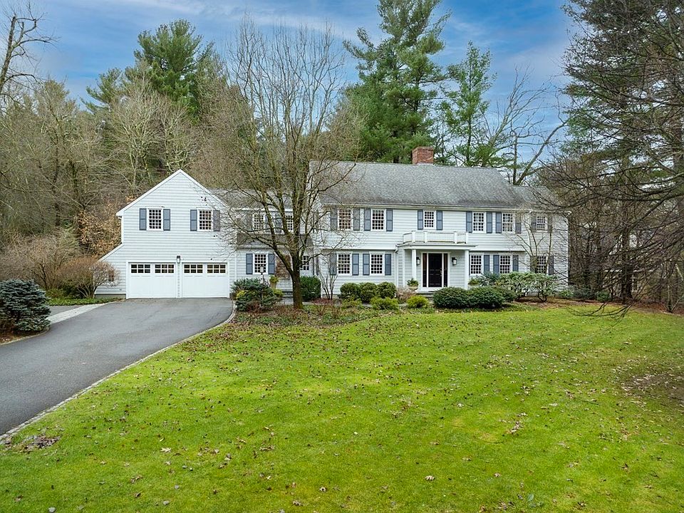 Land and privacy abound in this 5 bedroom Colonial beautifully sited on an acre and backing up to the Guernsey Bird conservation. The first floor features a crisp white kitchen and is open to the family room overlooking the stunning backyard with an oversized bluestone patio. Front to back living room, dining room, and mahogany office with built-ins complete the first floor. The second level features 5 ample bedrooms including the primary suite with a large walk-in closet and a convenient upstairs laundry room. The lower level has a gym, full bath, media area and large recreation room with sliders to the yard. All this on a cul-de-sac minutes to Wellesley Center. A truly unique property with endless possibilities.