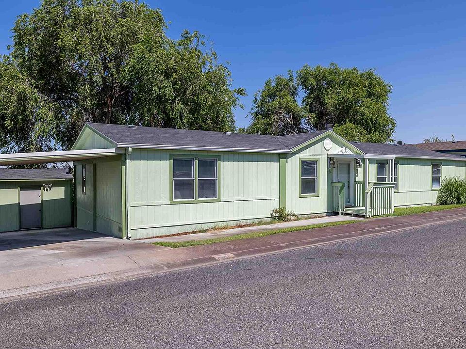 MLS# 254840 Clean and freshly painted south Richland manufactured home in wonderful South Richland park. Move in ready, 1782 sq ft three bedroom, two bath, living room, family room. Double sided fireplace with beautiful surround and mantel, vaulted ceilings, updated master bath vanity and fixtures. Great view of the Yakima River form the large covered back deck. Carport and shed. Private, shady, fenced back yard.