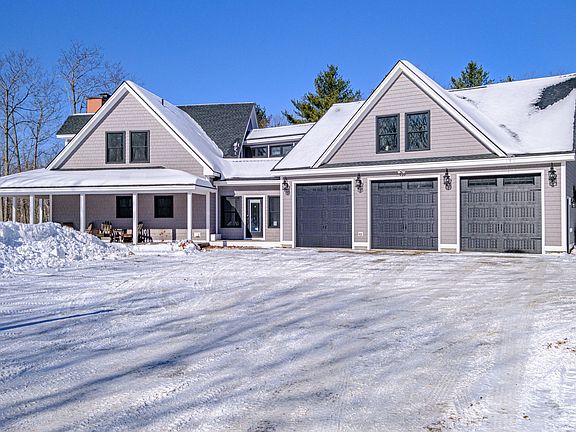 Tucked away on a private road with beautiful mountain views, this exquisite custom-built home is thoughtfully designed with elegant details, paired with modern functionality and rustic charm. Built in 2022, this lovely home boasts 4153 square feet of living space featuring 4 bedrooms (3 BR Septic), 4.5 bathrooms, an oversized 3-car garage and a grand catwalk leading to a large bonus room over the garage. The main living space is an open-concept design, highlighted by a stunning floor-to-ceiling stone fireplace, expansive windows that showcase the breathtaking views of Pleasant Mountain, cathedral ceilings and a perfect touch of rustic beams. The first-floor primary bedroom is hallmarked by a large walk-in closet and master bathroom featuring a stylish custom-built tile shower and a sophisticated soaking tub. Above the garage, the bonus room has endless possibilities and can be fashioned to suit your needs with access via the catwalk from the main home or through a separate entrance from the garage. With a full bathroom and plumbing already in place for a bar or kitchenette, this space can be transformed into the perfect in-law suite, additional master bedroom or a substantial entertainment space. With minimal maintenance in mind, this lovely home was crafted with upscale finishes including stamped concrete porches, Trex decking and an on-demand whole-home generator to take the worry and work out being without electricity. Situated in the charming town of Harrison, this property offers the perfect blend of tranquility and close proximity to all of the amenities the Lakes Region area has to offer. Located just 3 minutes from Harrison Village, less than 10-minutes from in-town Bridgton or 20- minutes to the Pleasant Mountain Ski Area, enjoy ease of access to unlimited recreational opportunities with multiple beaches, restaurants, shops, golf, skiing and more!