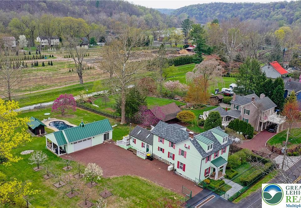 garage with an artist’s studio provides a dedicated space for an office and creative pursuits. The home’s modern comforts, including a full-house generator and a specially designed dog room with a heated floor and doggie door. Turnkey and immaculate with high-quality finishes & fabulous charm. There is an electric gate with generator back-up providing security and uninterrupted access. Updated and enhanced with love and care, the home offers two wood burning stoves, multi-zoned heating and cooling and a first-floor office. The new Elmira Period kitchen appliances add a touch of vintage charm with modern functionality. With all the charm of a Bucks County Inn, there are 4 BR & 3 baths. The cozy third floor bedroom, tucked under the eaves will have guests and children vying for their space. Outside, an established orchard features a variety of fruit trees & garden. Relax and enjoy the sounds and sights of this very special back yard oasis.