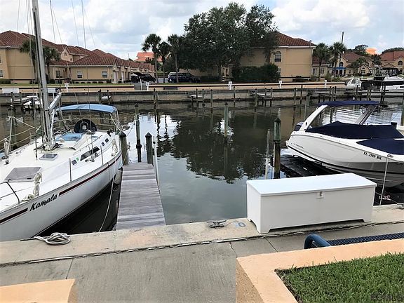 BOAT SLIP INCLUDED with this upscale, elegant & totally updated 3/2.5 unit that offers unrivaled view of marina & salt water canal & ICW. This beautifully remodeled town home has a gourmet kitchen with granite counters, stylish cream colored cabinets, modern tumbled stone backsplash & SS appliances. Downstairs master has remodeled en-suite bath with tiled shower & granite 2 sink vanity. 2 more dream bedrooms upstairs share a luxurious full bath & loft area, perfect for office. Unit shows like a model & boasts plantation shutters, stylish plank flooring & beautifully updated "Powder room" with granite counter & vessel sink. Sunlight fills every corner of this remarkable unit. Amenities include: ICW walking paths, pool, tennis court, putting green, shuffleboard, boccie, horseshoes & clubhouse with large screen TV/WIFI. Each day you spend in your canal home will feel like a holiday in paradise. Home being SOLD TURN KEY! Boat slip 10 is directly outside your patio,with ICW views. For more info call Vlaja 386-986-9344