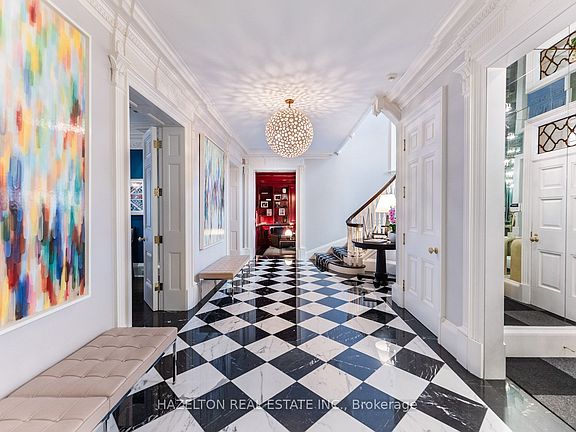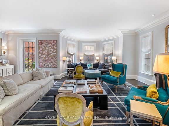 This majestic Neo-Georgian home sits proudly on the best block in all of the coveted south west Rosedale. This serene & peaceful pocket is ironically steps to all the fabulous shops & restaurants on Yonge St. Your children can conveniently walk to Branksome & York school. The York Club & Toronto Lawn are also just minutes away. The joy & convenience that come with living in this coveted enclave cannot be overstated. 52 Rosedale Rd. transports you to the earliest days in Rosedale, where the grand mansions with their elegantly proportioned rooms & tall ceilings were home to Toronto's founders. From the beautiful chef's kitchen w/cozy eat in area, to the grand dining area, one can host extravagant dinner parties, the oversized living area is the perfect backdrop for unwinding day to day, & hosting fabulous cocktail parties. All of these impeccable spaces overlook the superb gardens that sit peacefully behind the tall garden wall, ensuring tranquility & privacy. More than meets the eye, deceptively large rear garden offers an abundance of space for outdoor enjoyment including a plunge pool, if so desired. The large sunken den area with tall & deep coffered ceilings is an absolute delight. The 2nd floor houses 2 accessory bedrooms, each w/ensuite baths & the primary bedroom sanctuary. This expansive space boasts his & hers closets & bathrooms & a private office that provides a quiet workspace. The 3rd floor houses 2 additional bedrooms & an oversized room perfect for a home gym or recreational space for children. Walk out to your private sun deck, tan & enjoy breathtaking views of the Toronto skyline. The lower level boasts great ceiling height throughout, the large rec area is the perfect space for kids of all ages. 52 Rosedale Rd. offers best in class parking, with a full 2 car garage with direct access to the home, 2 additional spaces in front of the garage & a stately circular drive that can easily carry 3 more cars.