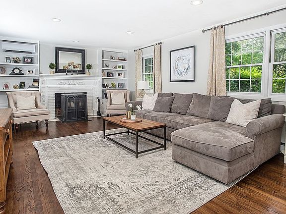 Welcome home to this charming, turnkey Colonial-style residence with beautiful exterior lines and curb appeal, impeccably maintained and boasting significant upgrades and improvements made over the last few years. Thoughtful design and detailing was paramount when expanding and renovating this special home and it shows. The heart of the home is the chef's kitchen with everyday dining area, conveniently open to the spacious living room with pellet stove and cozy sunroom offering brilliant views of the property every season of the year. The main level is rounded out by the office, den with full bathroom, and hallway full bathroom. The upper level offers the master bedroom with ensuite bathroom and three additional bedrooms with shared full bathroom, and conveniently located laundry. The lower level is fully finished with spacious family room and loads of closet space, plus direct access to the two-car attached garage. The property is beautiful with outstanding perimeter screening and mature trees, ample yard space for the swing set and lawn games, plus outdoor enjoyment from the walk-out deck and spacious bluestone patio, all making every living and entertaining super convenient! Located on a quiet street ideal for biking, walking or jogging, and only a few minutes to the village for restaurants, shopping, Ridgefield Playhouse, Prospector Theater, ACT Theatre, schools and more, plus a quick zip for commutes to lower Fairfield and Westchester Counties and trains to NYC.
