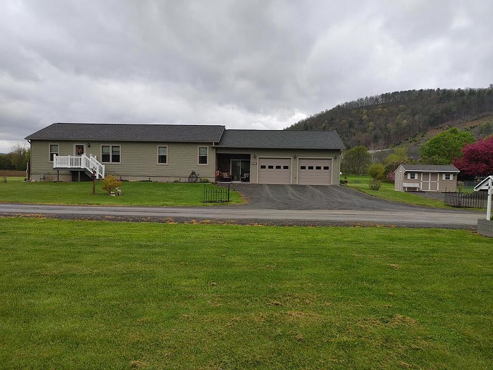 This beautiful 3 bedroom 2 full bath doublewide on a full basement was built in 2012. This is on 2.5 acres that could be easily subdivided as the lot across the road would have access to public water and sewer. The open concept of the living room, kitchen and dinning room makes it really easy to entertain. The master bedroom is very large with a double sink in the master bathroom. The full basement could be easily finished for more living area. There is a breezeway between the attached 2 car garage and the home that has a nice sitting area with a gas fireplace that will stay with the purchase so that you can relax and enjoy watching out the sliding glass doors either to the front yard or out to the back yard. The back porch is covered and has a great view. This is a Lane but does have a road maintenance agreement already in place.