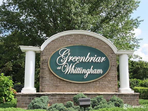 Welcome to Greenbriar at Whittingham. Meticulously maintained very active ADULT community. Lovely view of the golf course from front entrance and back garage entrance! Upon entering this spacious home you will find an inviting foyer, to the right is a bright EIK with Corian counter tops & large dining area. There is a spacious LR/DR combination with a wet bar and gas fireplace. The vaulted ceiling & custom, neutral paint throughout give this home a very open feel. Sliding door off the LR leads to a very private, fenced patio area. The master bedroom is on the first floor with large WIC & Ensuite bath with 2 sinks & separate soaking tub & shower. Upstairs you will find a second bedroom, bath & loft. This is a great area for a home office or private space for guests. There is an incredible club house with too many amenities to list! Very desirable centrally located community!!