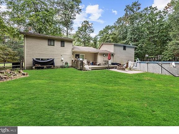 Welcome to this three bedroom and one and a half bath expanded home sitting on just under of an acre on a corner lot surrounded by the peaceful sounds of nature in the desirable town of Shamong. The many features include updated pergo-like flooring in the dining room (can also be used as living room) and kitchen, large updated eat-in kitchen with two sinks, plenty of cabinets, all appliances included and updated Pella slider to backyard, spacious family room with wood burning stove efficiently keeping the home warm during those cold winter days, master bedroom with a ceiling fan and private entrance to the hall bath, two other generously sized rooms with ceiling fans (attic access area with flooring for additional storage in one closet), updated full bathroom with recessed lighting, added breeze thru area mud room off kitchen with powder room, two car garage with huge loft area with gas stove waiting to be finished for additional living area, expansive back yard with back deck, propane gas line for the grill and fire pit area great for entertaining, above ground pool (approx. 10 yrs old) with brand new liner and a cartridge filter (never need to backwash) perfect for cooling off in the hot summer, long drive way great for parking RV's, campers, etc., newer vinyl siding (approx. 13 yrs old), updated first layer roof (approx. 16 yrs old), newer well with newer well pump (approx. 12 yrs old), tankless propane gas water heater and more! The owner chose propane gas for its cost efficiency (approx. $150 6 wks) and there is natural gas hook up at the street. While only minutes from Wharton State Forest, the home is still conveniently located to shopping, restaurants, the shore and Philadelphia. Enjoy all of this, reasonable taxes and a highly rated school system in Shamong!