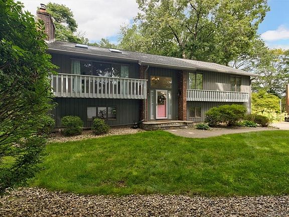 If privacy is what you are looking for, then this home is for you Set on 1.27 acres and bordering over 8 acres of deeded conservation land, this meticulous 3 bedroom, 2 1/2 bath multi-level home has it all Open the front door and enter into your own paradise. Step up into the living room with cathedral ceiling and new skylights where you can relax by the fire, have a casual conversation or just enjoy the view and natural light and deck off of the sliding door. The open air kitchen invites the cook to mingle with guests while preparing meals. Right off of the kitchen is the dining room where you can host special holiday meals or simply gather with friends. The master bedroom at the end of the hall has its own full bath, closet and slider out to your own private deck. Two more generously sized bedrooms and another full bath complete this level. The finished lower level is the perfect space to entertain. Sit by the fire and relax with a good book or step outside onto your private yard and patio. The yard is perfect for those backyard barbecues or just enjoy the privacy that this yard has to offer. Updates include: gutter guards, irrigation system, generator, new skylights, new chimney liner and caps, freshly painted, master bath remodel, newer carpets. Home Sold As-is.