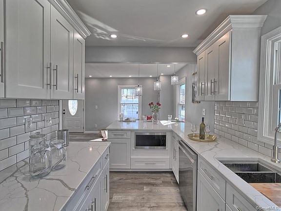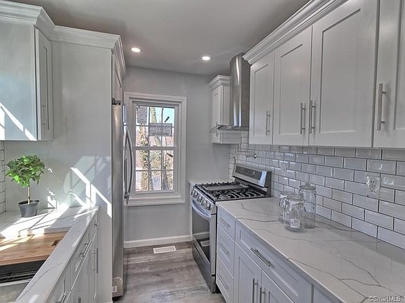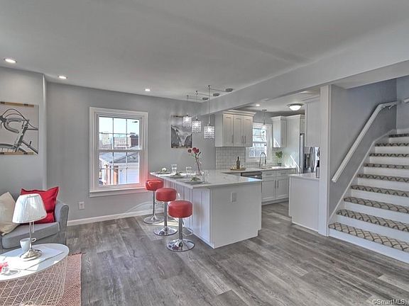 Don't miss this COMPLETELY RENOVATED, sun-filled 4-Bedroom Cape! ALL NEW MECHANICALS, NEW ROOF, WINDOWS, ELECTRICAL AND PLUMBING. Enjoy cooking at this tastefully remodeled kitchen, equipped with brand new stainless steel appliances, modern white quartz countertops, large stainless steel sink, a pot filler faucet over gas range, oven/air fryer combo, and sub-tile backsplash. Your friends and family will love the oversized island, great for entertaining and food preparation. Main level offers an open layout, LR/DR combo, two bedrooms. 1/2 bath, kitchen and a spacious laundry room furnished with new washer and dryer. The upper level offers 2 good-sized bedrooms and a full bath offering Bluetooth speakers. High-quality waterproof vinyl flooring throughout the house and new tile flooring in bathrooms. Stay cool during the summers with NEW CENTRAL AIR. Smart Ecobee thermostats on both floors. Everything is done so you won't have to repair or replace anything for many years to come! Make your appointment to see this home TODAY!