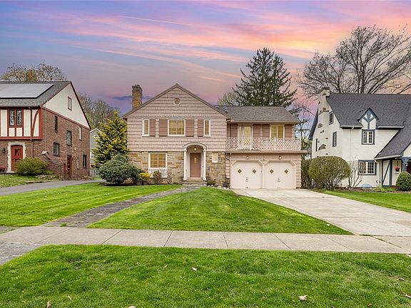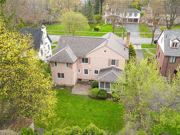 Welcome to the serene charm of Rochester! This splendid 4-bedroom, 3-bathroom home boasts updated bathrooms, gleaming hardwood floors, and a delightful dining room leading to a summer screened-in porch. The first floor offers versatility with a spacious den/office, OR possible 5th bedroom, OR a convenient guest OR Inlaw bedroom. Enjoy gatherings in the eat-in kitchen or formal dining room with elegant dentil molding. New waterproof basement flooring, cozy wine cellar, and numerous newer window treatments enhance the interior. Updates include new windows in 1998 and exterior paint in 2022. A fabulous addition features a main bedroom suite with skylights, a potential private deck, and double walk-in closets, one cedar-lined. Gutter guards, a shed, and updated HVAC systems ensure comfort and convenience. The private yard is perfect for outdoor relaxation, complemented by sidewalks and streetlights. Located near Cobbs Hill Park, and Wegmans, with easy access to 490. Your dream home awaits!