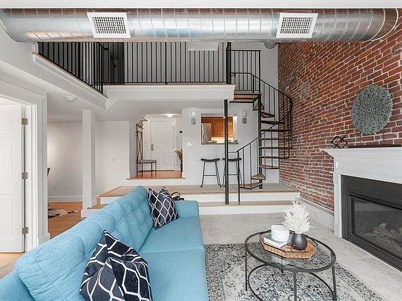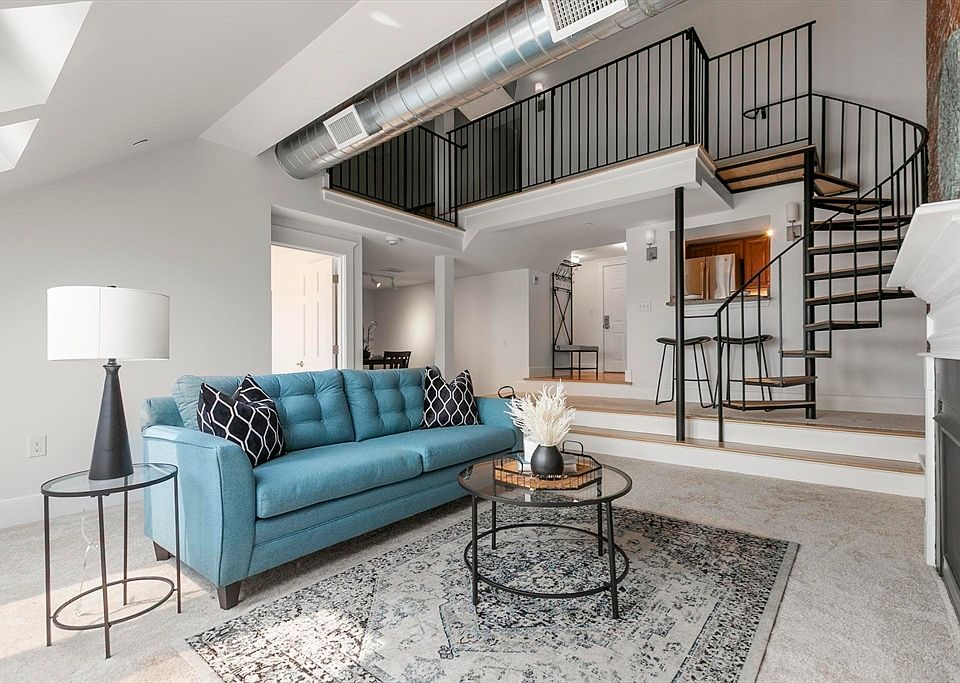 SCHEDULE YOUR PRIVATE SHOWING TODAY! Welcome to this stunning 2-bedroom, 2-bathroom penthouse unit that perfectly blends modern elegance with urban charm. Featuring exposed brick, a working fireplace and soaring ceilings with skylights, this stylish unit is full of character and natural light. The first floor offers an inviting living area, dining space and an updated galley kitchen with granite countertops, stainless steel appliances and a cozy barstool nook, ideal for casual dining. A spacious bedroom and full bath complete the main level. A spiral staircase leads to a dramatic loft-style primary suite, complete with a private bath and an enormous walk-in closet. Other highlights include central A/C, in-unit laundry, and a deeded parking spot for ultimate convenience. Great commuter location just steps to the train, and mins to major highways! Enjoy contemporary architecture in a prime location close to downtown Reading's trendy restaurants and shops!