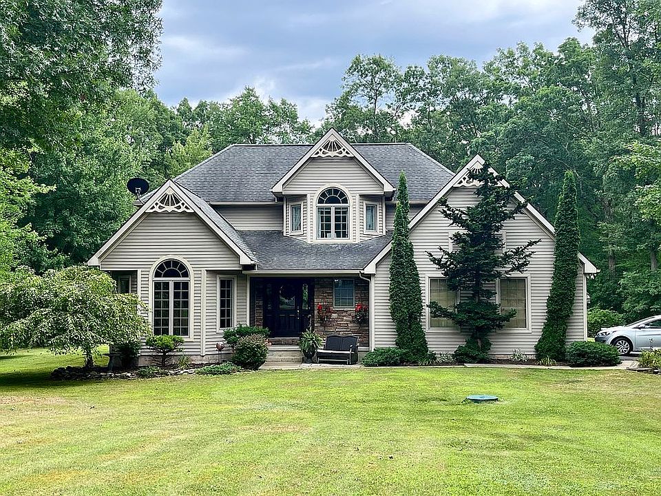 One of a kind non-tuskes single family home in Sand springs Golf course community. Home is located 5 houses into development so easy access in and out of community. Located near the sprawling pocono mountains only 1 mile from I-81 and I-80 and only 15 miles from PA Turnpike access. Single family home offers large rooms on a very private 1.09 acre lot with mature landscaping, a deck, gazebo, patio areas and a heated 16x32 sport pool. Spread out in 4 large bedrooms one with a vaulted ceiling (all bedrooms on 2nd floor) , living room with stone fireplace, dining/entertaining area with vaulted ceiling, and huge kitchen with maple cabinetry. 2 full baths with double vanities on the 2nd floor and a 1/2 bath on the first floor. Laundry room located on 1st floor as well. Full unfinished basement and large room over double garage offer tons of storage. Small finished craft/office room in basement. Natural gas heat. Central air. Public sewer and water.