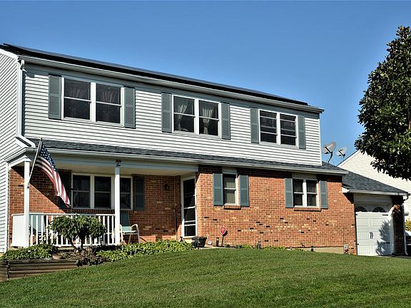 Lovely home looking for a new owner. Welcome home to this charming colonial in the well sought after neighborhood of Penn Acres South. Well maintained 4 bedroom, 4 bathroom (2 full, 2 half) original owner home. Plenty of curb appeal with new vinyl railing on front porch and meticulously nurtured landscaping. Ample off street parking with extended driveway and one car garage. Save on electricity with Tesla solar panels on newer roof. Features an open foyer with double door hallway closet, vinyl flooring, and double vented doors that lead to kitchen. The spacious living room has laminate flooring and large windows that allow an abundance of natural light. The dining room has laminate flooring, chandelier and more natural lighting. The relaxing family room has laminate flooring, propane fireplace, and an entrance into the kitchen eat in area. The kitchen has vinyl flooring, ample cabinetry, pantry, laminate countertop, single bowl stainless steel sink with water filter and hand sprayer, garbage disposal, microwave with exhaust to outside, and peninsula island. The kitchen eat in area has vinyl flooring, second pantry/broom closet, ceiling fan, and patio sliding door that leads to small deck and level backyard. Step down to the powder bathroom which is adjacent to the laundry/mudroom, that has cabinetry for supplies, an entry/exit door to the side yard and a garage entry/exit door. The oversized Master bedroom has a ceiling fan, large double windows, walk in closet, carpet and Master bathroom. Three other generously sized carpeted bedrooms, a hall bathroom, and a large double door linen closet, finish off the second floor. The basement is partially finished with drywall and half bathroom. There is a family/media area with an egress/bilco door, wall hung propane heater, a book nook area, and a utility storage room. You are sure to love this home upon entry! Schedule your tour today!
