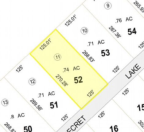 Country Setting Lake Community Lot sets atop a high rise and slopes to the north benefiting anyone with a walk out basement in their house design. A short walk to the deeded beach and lake use for those water seekers. Grandfathered, Convenient & Lovely Secret Lake.